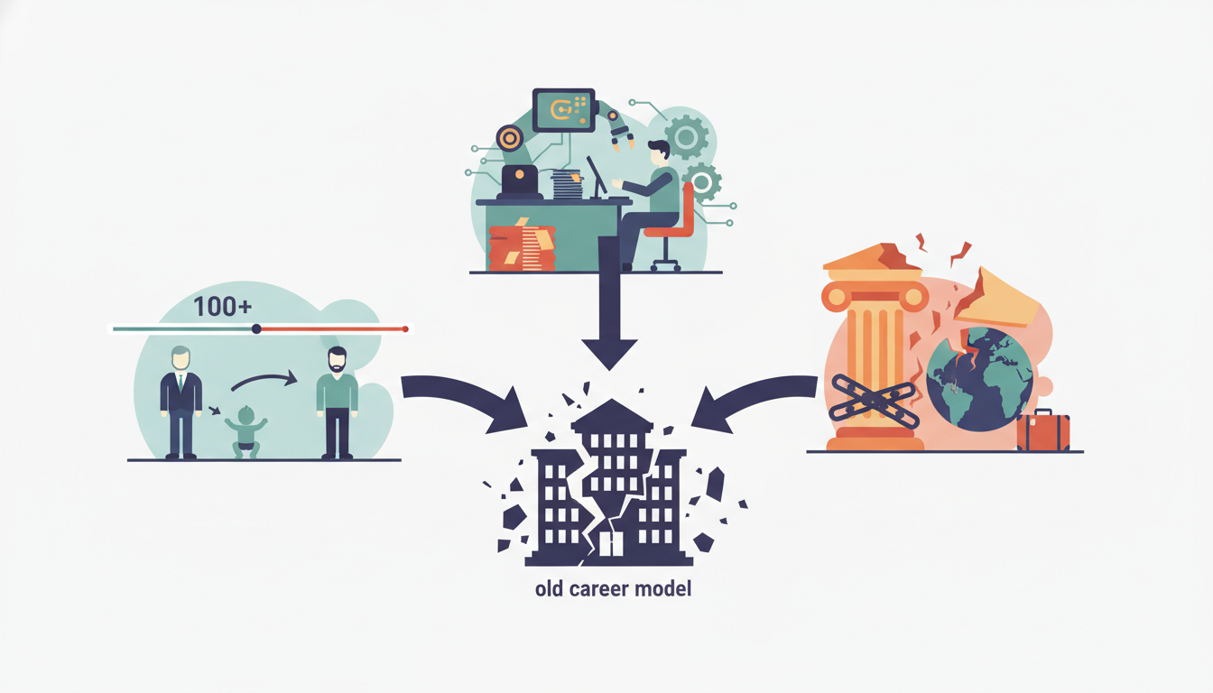 しかし、この変化は始まりに過ぎませんでした。人生100年時代の到来、デジタルトランスフォーメーション(DX)の加速、そして終身雇用制度の実質的な崩壊…これらの構造的変化は、従来の「一つの会社で定年まで働く」というキャリアモデルを完全に時代遅れのものにしています。